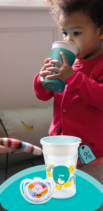 Jedes Kind ist einzigartig! Mit unseren personalisierbaren Produkten hast du unzählige Möglichkeiten, die Individualität deines Kindes auszudrücken – von personalisierten Trinklernflaschen bis hin zu Schnullern, die speziell für euch gestaltet sind. Deiner Kreativität sind fast keine Grenzen gesetzt!